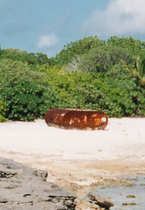 TIGHAR sent a small team to Nikumaroro the next year to recover what we dubbed the Wheel of Fortune, but when they arrived the team saw that the shore of the main passage had recently suffered severe damage and overwash. The wheel was gone, presumably washed into the lagoon by the storm.