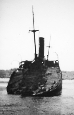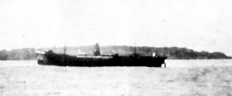Although of poor quality, this is the first known photo of Norwich City aground at Gardner. It is believed to have been taken from one of the ships that arrived from Samoa on December 3, 1929 to rescue the survivors. Notice that the superstructure is gone. The impact of the grounding resulted in a fire that consumed the wooden parts of the ship.