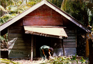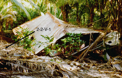 The “1940 Gardner Co-Op Store” was located near the head of the landing channel. This is how it appeared during TIGHAR’s first expedition to Nikumaroro in 1989.