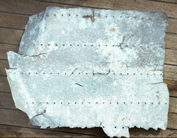 Artifact 2-2-V-1 is a section of the external “skin” from an aluminum airplane of American manufacture that was destroyed in a catastrophic event somewhere in the Central South Pacific.
