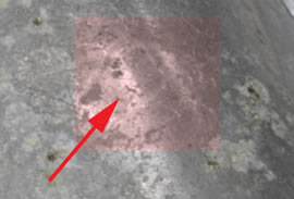 Zinc chromate did not come into common use in aircraft until the late 1930s. Earhart’s Electra, constructor’s number (c/n) 1055, the 55th Model 10, was built in the spring of 1936. Lockheed sales literature for the Model 10 Electra dated March 2, 1936, specifies that “Although its aluminum coating renders Alclad highly resistant to corrosion, every part of the interior of the airplane is painted for further protection.” A section of wreckage recovered by TIGHAR in 2004 from the crash site of Lockheed 10A constructor’s number (c/n) 1024, which flew into an Idaho mountain in December 1936, has aluminum-colored paint on the interior surface. A close examination of the interior surface of 2-2-V-1 reveals what may be surviving traces of aluminum-colored paint.