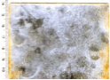 During the summer of 2009, one year into the experiment with the truck mirror and six months into it with the Estee Lauder, it occurred to me that the sand/borax mixture used during the winter was probably a more accurate analog with Nikumaroro conditions than the gravel used during the summer, but that the outdoor exposure to the elements was reasonably analogous to Nikumaroro conditions. Accordingly I elected to combine the two variables, creating a bed of sand (about 90%) and borax (about 10%), with some gravel to mimic the Seven Site’s rubbly environment, in an outdoor birdbath. Placing both mirrors there, I then carried on as usual. I noted little change in either mirror over the next several months. On October 1st, 2009, I returned both mirrors to their winter quarters under my desk. By December 2009, the back of the truck mirror seemed to be thinning, and the several clear areas with neither silvering nor backing were getting larger. The silvering continued to show signs of dissipating, leaving the gray backing showing through the glass. The Estee Lauder mirror showed a pattern of pinholes and patches of vanished silvering, mostly concentrated in the oval pattern formed by the adhesive on the back of the backing. By February 2010 this pattern was quite marked, and pinholes were common all over the Estee Lauder mirror.