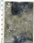 I continued the experiment with both mirrors in the same manner as before, at the end of each month removing them from their matrix, rinsing the (often concreted) sand off them, and flipping them over so that alternating surfaces were exposed. I began the practice of placing them on a flat-bed scanner and capturing images of each side of each mirror, to create a visual record of what was happening to them. Which, as of the time I began imaging, was not much. However, by early February 2009, pinprick-sized holes were beginning to appear in the backing of the truck mirror, and one small piece of backing had sloughed off during the monthly rinse. By early March the pin-holes were more frequent and obvious. There were also areas in which the silvering seemed to have vanished, so that when looking at the face of the mirror I was looking through clear glass at the rubbery backing.