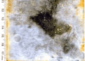 During the summer of 2009, one year into the experiment with the truck mirror and six months into it with the Estee Lauder, it occurred to me that the sand/borax mixture used during the winter was probably a more accurate analog with Nikumaroro conditions than the gravel used during the summer, but that the outdoor exposure to the elements was reasonably analogous to Nikumaroro conditions. Accordingly I elected to combine the two variables, creating a bed of sand (about 90%) and borax (about 10%), with some gravel to mimic the Seven Site’s rubbly environment, in an outdoor birdbath. Placing both mirrors there, I then carried on as usual. I noted little change in either mirror over the next several months. On October 1st, 2009, I returned both mirrors to their winter quarters under my desk. By December 2009, the back of the truck mirror seemed to be thinning, and the several clear areas with neither silvering nor backing were getting larger. The silvering continued to show signs of dissipating, leaving the gray backing showing through the glass. The Estee Lauder mirror showed a pattern of pinholes and patches of vanished silvering, mostly concentrated in the oval pattern formed by the adhesive on the back of the backing. By February 2010 this pattern was quite marked, and pinholes were common all over the Estee Lauder mirror.