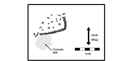 The linear depression apparently had been used as a campsite at least once; several tarp grommets were found there, together with a scotch whiskey bottle top and several indeterminate lumps of badly rusted ferrous metal. In a 1942 publication on islands in the area Edwin H. Bryan implies that this depression, with its stone wall (Structure 1; see Figure 3 below) might be some sort of prehistoric cultural feature, but we saw nothing to suggest that this was the case. The depression appears to be a natural artifact of the adjacent storm surge ridge, and the wall is similar to those found elsewhere on the island as remnants of the 19th century guano operation. | The linear depression apparently had been used as a campsite at least once; several tarp grommets were found there, together with a scotch whiskey bottle top and several indeterminate lumps of badly rusted ferrous metal. In a 1942 publication on islands in the area Edwin H. Bryan implies that this depression, with its stone wall (Structure 1; see Figure 3 below) might be some sort of prehistoric cultural feature, but we saw nothing to suggest that this was the case. The depression appears to be a natural artifact of the adjacent storm surge ridge, and the wall is similar to those found elsewhere on the island as remnants of the 19th century guano operation. | ||