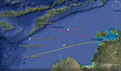 On the flight from Singapore to Darwin, Australia, the Croydon aircraft experienced varying compass deviations reaching a maximum in the Timor Sea area of around 15 degrees. [3] After arriving at Melbourne, however, the compass appeared to be correct and no instrument check or maintenance was performed. Though the crew anticipated a repeat of the compass deviations on their return flight, none materialized by the time they reached Darwin. Accordingly, the craft set out on a departure course for Koepang with no deviation adjustment applied to the compass heading. They were confident that the Darwin Royal Australian Air Force Base Directional Wireless Station would provide reliable bearings should a compass problem recur.