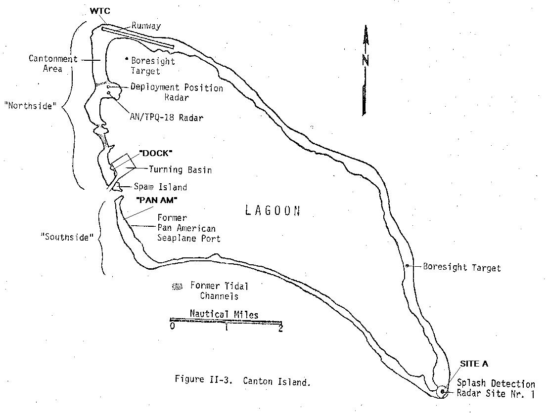 Sketch map of Canton Island, circa 1973, from: USAF Environmental Health Laboratory, Kelly AFB, Texas, "Environmental Survey of the Phoenix Islands Central Pacific Ocean," EHL(K) 74-18 August 1974