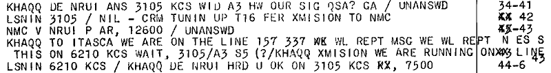 The crucial information here is: "We are on the line 157 337. Will repeat the message. We will repeat this on 6210 kcs. Wait. We are running [on] line [north and south]."