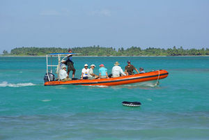 "Nai’a uses hard-bottomed inflatables known, coincidentally, as Naiads. Boarding and disembarking the skiffs from the ship’s aft dive platform in a choppy sea requires timing, core strength, and agility. A misstep can mean getting crushed between the skiff and the hull. The Black Tips (reef sharks) are always on hand to help should anyone fall overboard."[1]