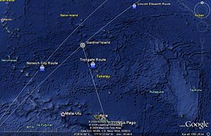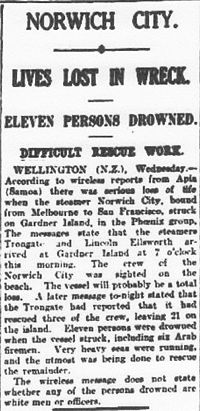 - New Zealand Pacific Aviation Survey Expedition: General Report: “anchorage of sorts was found about one mile south of the wreck of the "City of Norwich”.