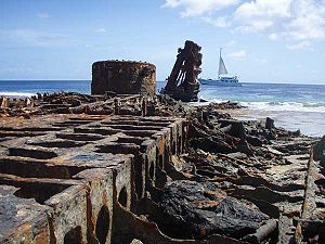 - Picture of SS Norwich City stranded on Gardner Island reef, from website of Reardon Smith Ships, apparently taken soon after the wreck.